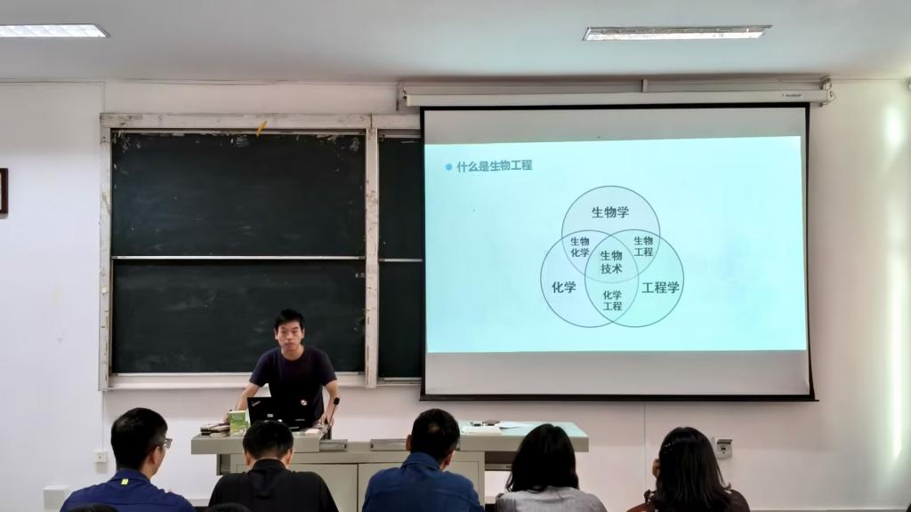 9月18日,刘晓鹏教授在4202教室主讲,解析发酵工程制药等五大研究方向,结合国家“十四五”规划,阐述行业27%年均增速的战略地位,介绍依托省级实验示范中心的办学条件及43家企业实习基地,建议新生聚焦“文凭、技能、人格、友情”四大成长目标。
