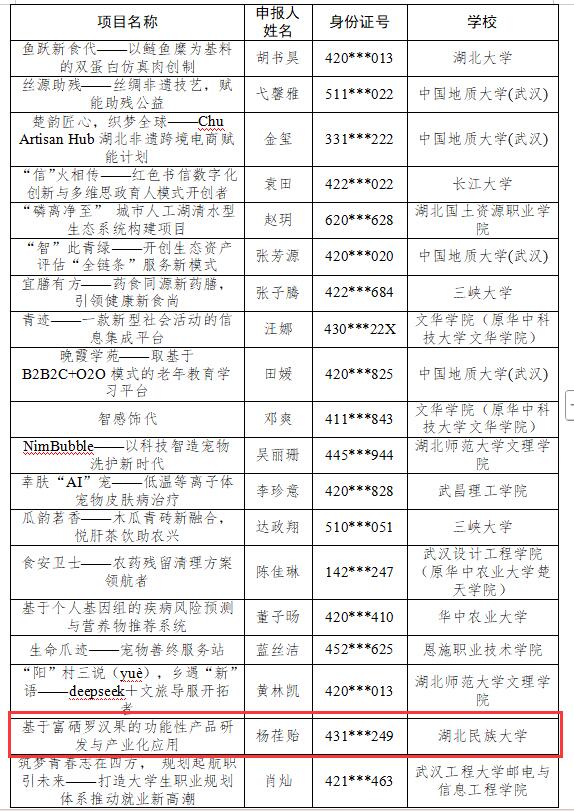 喜报 | 我校三个项目成功入选2025年度湖北省大学生创业扶持项目创意组“金点子”项目
