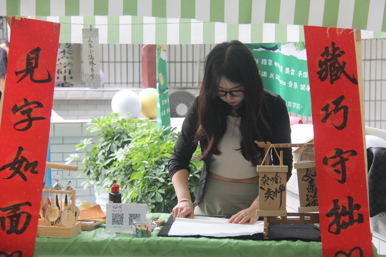 本次创客集市的项目团队成员均为民大在校大学生,项目涵盖书法艺术、非遗文创、中医推拿、特色美食等多种类别。在活动现场,美食的香气扑鼻而来,令人垂涎欲滴;艺术创作的摊位前,一幅幅作品色彩斑斓;“一分钟吃完一片面包”小游戏,挑战者们纷纷拼尽全力。