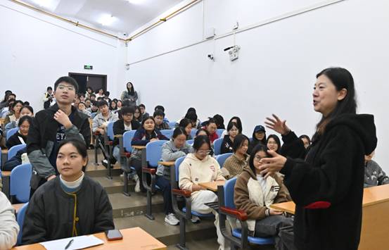 主讲人史兴松教授是对外经济贸易大学英语学院教授、博士生导师,她长期深耕跨文化传播与商务英语领域,主持多项国家级、省部级课题,在国内外顶级期刊发表论文 50 余篇,核心学术成果与实践经验备受业界认可。讲座中,史兴松教授围绕 “跨文化传播差异对比” 与 “适应性培养” 两大核心维度,结合国际商务沟通、日常跨文化互动中的生动案例,深入剖析全球化背景下跨文化沟通的本质规律。她从理论高度解读不同文化的核心差异,同时给出 “识别差异 — 调整策略 — 提升适应力” 的实践路径,让抽象理论变得直观易懂。近 90 分钟的分享里,教室内秩序井然,师生们专注聆听、不时记录,沉浸在跨文化沟通的知识盛宴中。