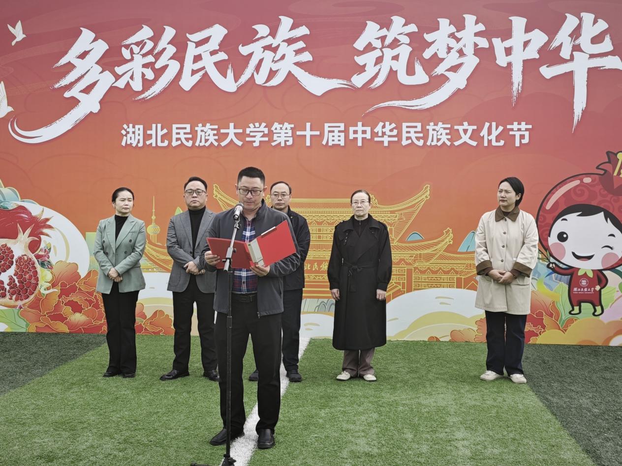 时间:2025-11-18 编辑:办公室 点击:11月15日,湖北民族大学第十届中华民族文化节在五环运动场隆重开幕。本届文化节以“多彩文化韵,千年中华情”为主题,通过民族体育展演、非遗体验、民俗互动等多元形式,展现中华民族文化的交融共生。外国语学院主要承办剪纸和脸谱非遗体验活动。