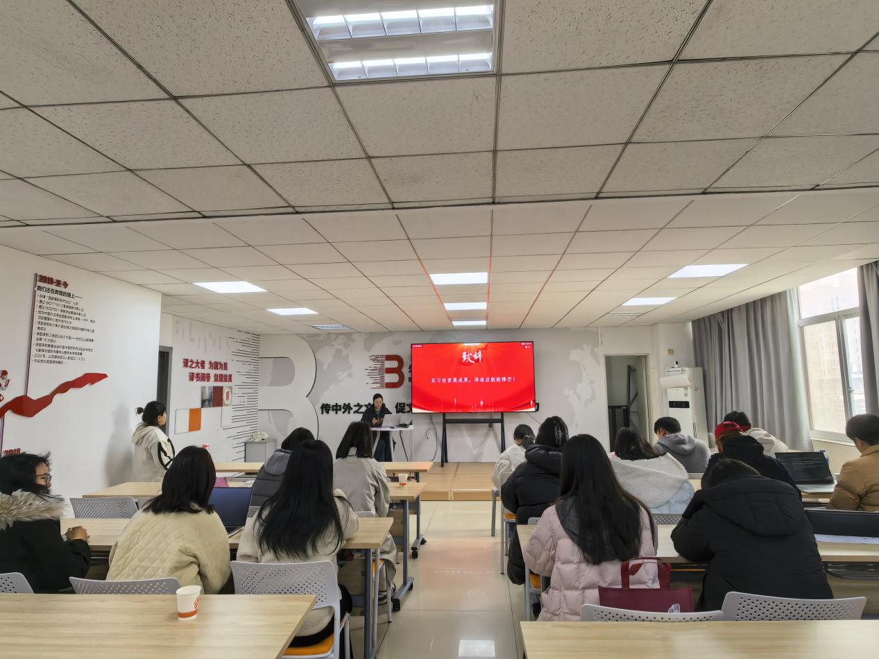 为强化实战能力,实习设置了翻译项目模拟。学生们在导师带领下,以小组形式亲身经历从项目分析、资源准备、翻译实施到审校交付的完整流程,初步体会翻译项目管理规范与团队协作要求。此外,针对新闻翻译等特定领域,开展了专项技巧讲解与实战训练。