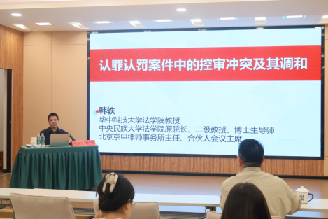 韩轶教授以“认罪认罚从宽制度适用中的控审冲突”为引言,精辟生动地分析了当前司法实践中控审冲突的具体表现与成因。他结合自身深厚的理论积淀与丰富的实务经验,通过典型案例,进一步阐释了隐藏于冲突背后的刑事司法基础理念分歧,并就调和路径发表了独到见解。在互动环节,韩轶教授对同学们的提问给予了精辟解答,现场学术气氛热烈。