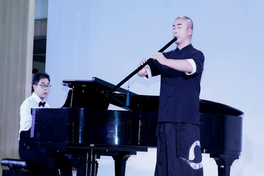 美育教育中心的音乐教师为观众奉献了一场精彩纷呈的艺术盛宴。音乐会以一曲《半山听雨》拉开序幕,龙林等老师以大胆创新的艺术手法,开启萧、古琴与钢琴的跨时空对话。黄丽芬深情献唱的李白诗歌《秋风词》,与王多的钢琴伴奏交相辉映,尽显“秋风生渭水,落叶满长安”的盛唐气象。