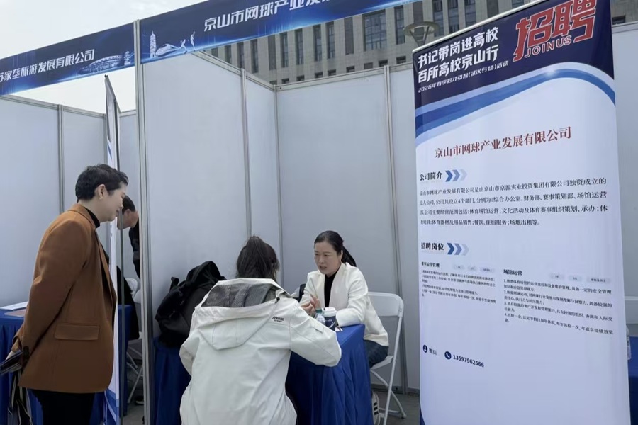 “我学的是体育教育,之前在校期间有过体育教学和赛事组织的实习经历,也获得过‘优秀学生干部’等荣誉。”李洁落落大方地介绍自己。京山网球产业发展有限公司招聘负责人现场与她深入沟通了岗位职责与发展路径。“这个学生专业还是和我们的招聘需求很匹配,看到学校老师这么用心地带着学生来,我们很感动,也愿意给他们更多机会。”该企业相关负责人表示。