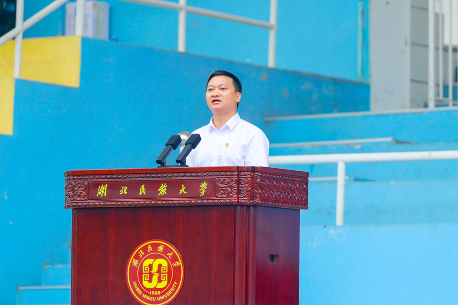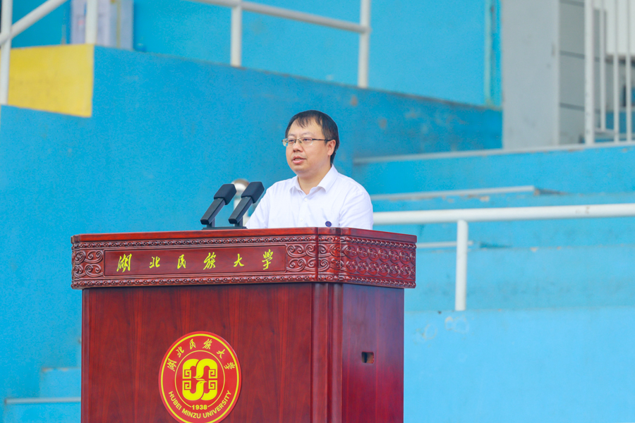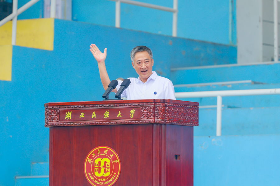 “长夏鲲鹏举,风好正扬帆”,9月6日上午,湖北民族大学2025级新生开学典礼暨军训动员大会在五环体育场隆重举行。5400余名2025级本科生、预科生及硕士研究生怀揣滚烫的梦想和青春的热忱,在初秋的桂花园开启崭新的人生旅程。