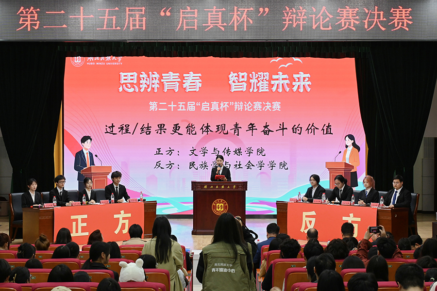 4月10日,湖北民族大学第二十五届“启真杯”辩论赛决赛暨颁奖典礼在行政楼一号会议室举行。