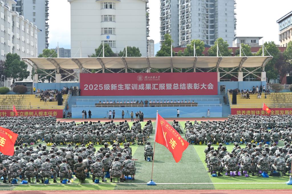 迷彩映日,青春似火。9月15日,湖北民族大学2025级新生军训成果汇报暨总结表彰大会在五环体育场举行。历经军训的淬炼与成长,全体参训学子飒爽蜕变,以挺拔之姿、昂扬之态接受检阅。表彰大会现场中国人民武装警察部队恩施支队支队长郑华业,副支队长、军训团副团长肖利强,学校党委副书记、副校长余来,党委常委、纪委书记、监察专员张宏磊,学校相关职能部门负责人、各二级学院(部)党委(党总支)书记及全体承训教官一同见证...