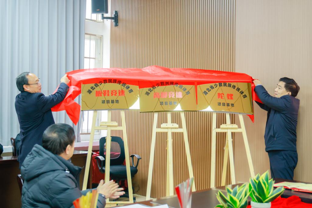 1月23日,高脚竞速、板鞋竞速、陀螺三个省级民族传统体育项目基地在湖北民族大学正式揭牌。省民宗委二级巡视员程家忠,湖北民族大学党委常委、统战部部长田景福出席湖北省少数民族传统体育训练基地检查指导暨2026年体育学院集训备战专题会,并共同为三个省级项目基地揭牌。基地揭牌仪式田景福表示,湖北民族大学始终坚守“为少数民族和民族地区服务、为国家发展战略服务”的办学使命,将民族传统体育深度融入立德树人全过程,探...
