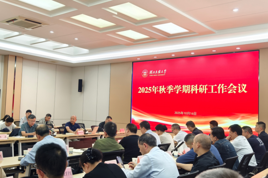 10月16日下午,湖北民族大学2025年秋季学期科研工作会议在行政楼2号会议室召开。学校党委常委、副校长刘志军出席会议并讲话。会议现场刘志军对学校今年以来在科研领域取得的业绩给予了高度肯定,并向默默耕耘在教学科研一线的全体教师致以衷心的感谢。他指出,科研工作是驱动学校内涵发展的“核心引擎”,是提升办学核心竞争力与社会影响力的“战略支点”,面对新时期“建设高水平应用型大学”与“实现博士学位授予单位重大突破...
