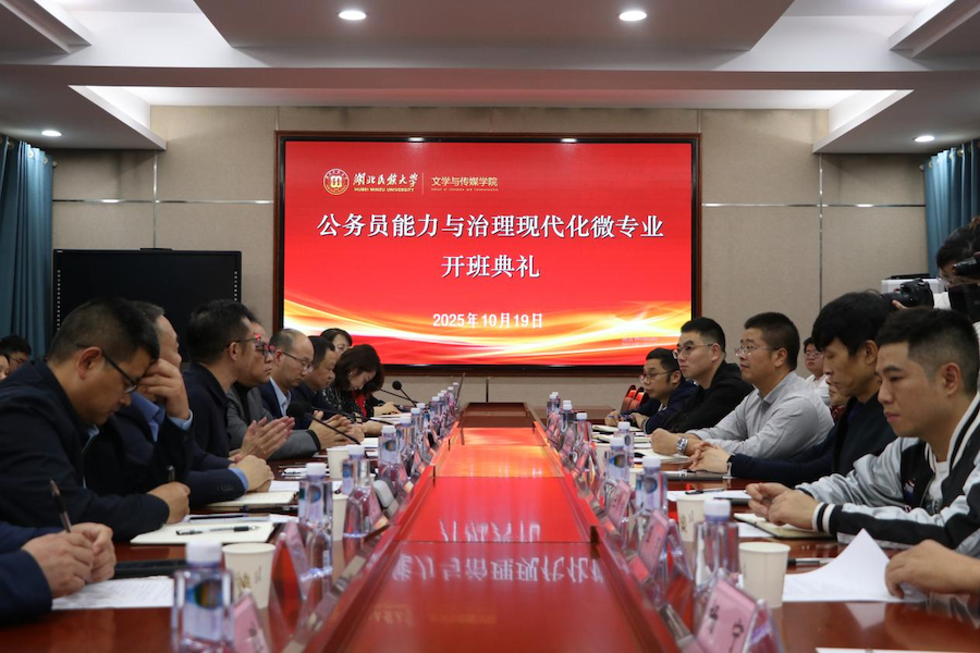 10月19日,湖北民族大学“公务员能力与治理现代化”微专业开课典礼在文学与传媒学院智慧教室一举行。作为学校首个深度校企合作、跨学科融合的微专业项目,典礼汇聚校内外多方代表,标志着学校在创新型人才培养与服务国家战略方面迈出重要一步。开课典礼现场典礼由文学与传媒学院党委书记张刚主持。学校党委宣传部、教务处、文学与传媒学院、教师教育学院等单位相关负责人,微专业合作企业武汉毕上教育科技公司董事长夏晓华等企...