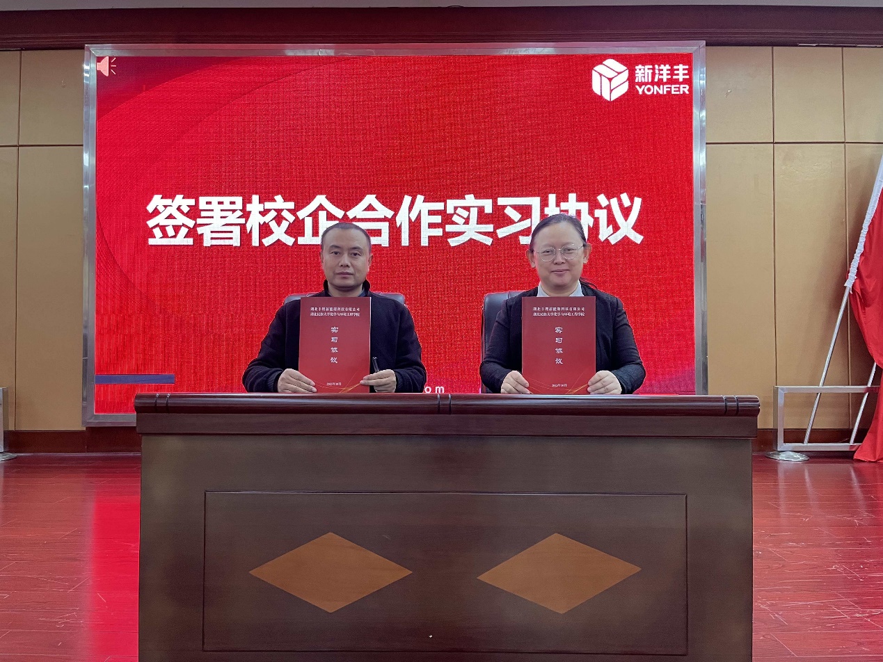 在与会人员的共同见证下,翟琨副院长与胡明峰总经理分别代表校企双方签署“新洋丰产业班”实习协议。协议的签署,标志着双方在共建人才培养平台、推动教育链与产业链融合方面迈出坚实一步。