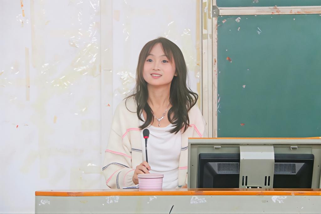 2023级优秀学生代表李昕恩发言。她结合自身经历分享大学成长感悟,并鼓励新生积极把握各类实践机会,勇于展示自我,在承担责任中体验成长,以饱满的热情面对大学生活中的挑战与收获。