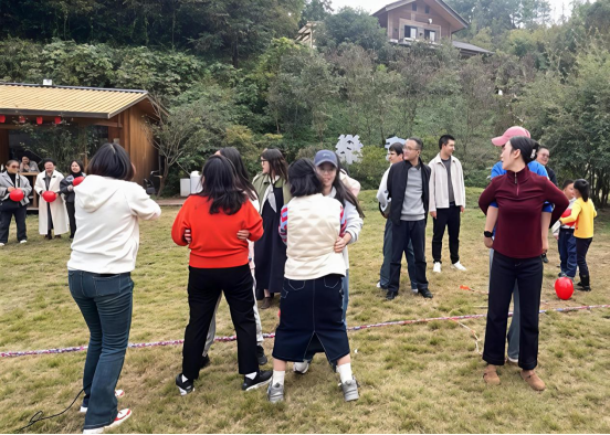 “硕果累累”趣味收粮赛巧妙设计双人协作运球项目教师们两人一组,或背靠背、或面对面,在不用手触碰的情况下完成运球任务,现场气氛热烈,欢声笑语不断。这一环节既考验了搭档间的默契配合,又以寓教于乐的方式展现了粮食归仓的过程,让教师们切身感受到乡村振兴中团结协作的重要性。