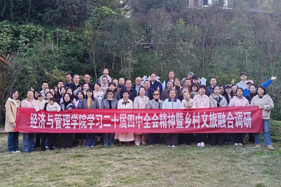 本网讯(记者 成守炜/文 陈环照 杨紫怡/图)为深入学习贯彻党的二十届四中全会精神,丰富教职工精神文化生活,增强教师队伍凝聚力与向心力,积极发挥学科专业优势服务地方发展,2025年11月13日,经济与管理学院组织教职工赴恩施市莲花池村燊和自然之家,举办了一场学习贯彻党的二十届四中全会精神与乡村文旅融合调研于一体的特色主题实践活动。