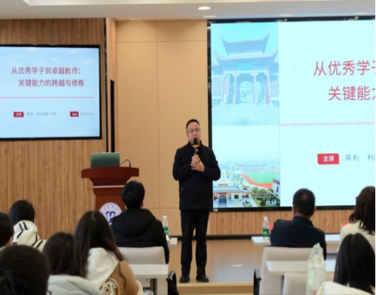 蒋利以《从优秀学子到卓越教师:关键能力的跨越与修炼》为题作主旨报告。报告从教育的传承与使命、卓越教师的四个核心维度、从学生到教师的五个跨越、卓越教师的五大核心能力、从新手到卓越的四个阶段、以及教育技术赋能教师成长等方面展开,并结合中学教育丰富的实践场景,从中学校长的视角对未来教师的职业成长提出中肯的建议和精彩的分享。