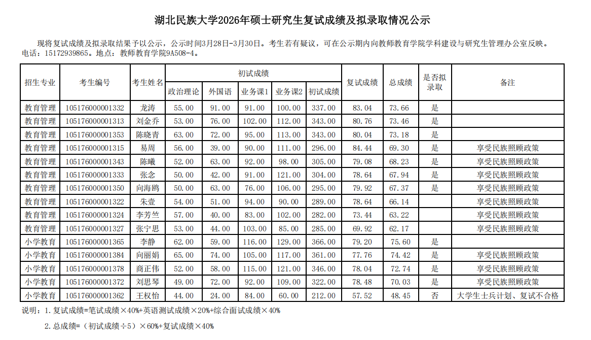 教师教育学院2026年硕士研究生复试成绩及拟录取情况公示