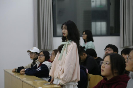 最后,团支书提议“全班30位同学以时间为线,一人一句说中国变化”,现场瞬间热闹起来:有人从“父辈凭粮票换物资”说到“如今动动手指收快递”;有人从“黑白电视稀罕物”讲到“高清直播看航天”;有人提“土路泥泞难行”,接话的便续“高铁半日跨千里”……30句简短话语,串起从衣食住行到科技国防的时代跃迁,也让“强国”二字在接力中愈发鲜活。