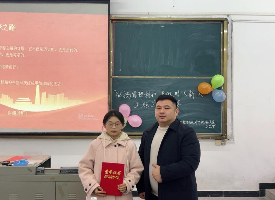 比赛现场,参赛选手依次登台,全员紧扣主题,各展风采。选手们或深情追忆雷锋同志的经典事迹,重温榜样的温暖力量;或结合自身志愿服务经历,分享践行雷锋精神的真切感悟,同时借助 PPT、照片、视频等多元形式,让宣讲内容更生动、更具感染力,生动诠释了新时代青年对雷锋精神的理解与传承,也展现出数统学子向善向美的精神风貌。