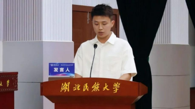 新生代表熊薪科分享了自己在民社学院从本科生到研究生的成长历程。从摆手舞文化的浅层研究,到文化传承的使命感悟,使他坚定了深耕民族学的信念。他呼吁新生把握当下,走好人生之路,践行“博学博爱,立人达人”的校训精神和肩负“民社青年,安民济社”的学子使命。