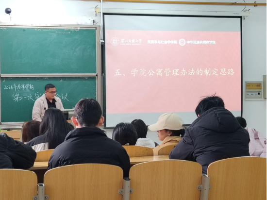 (本网讯 郑扬帆)2026年3月6日,我院在修远楼5B105教室召开2026年春季学期第一次寝室长大会。此次大会的主题是公寓安全教育,大会由辅导员郑扬帆主持,学院2023-2025级本科生寝室长参加本次会议。