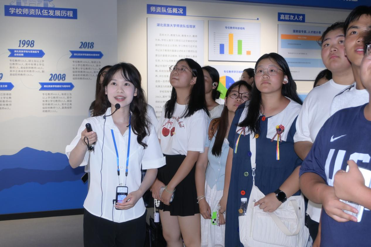 湖北民族大学2025级入学新生在展览中心开展入学教育,帮助学生了解并传承学校优秀传统和精神内核。