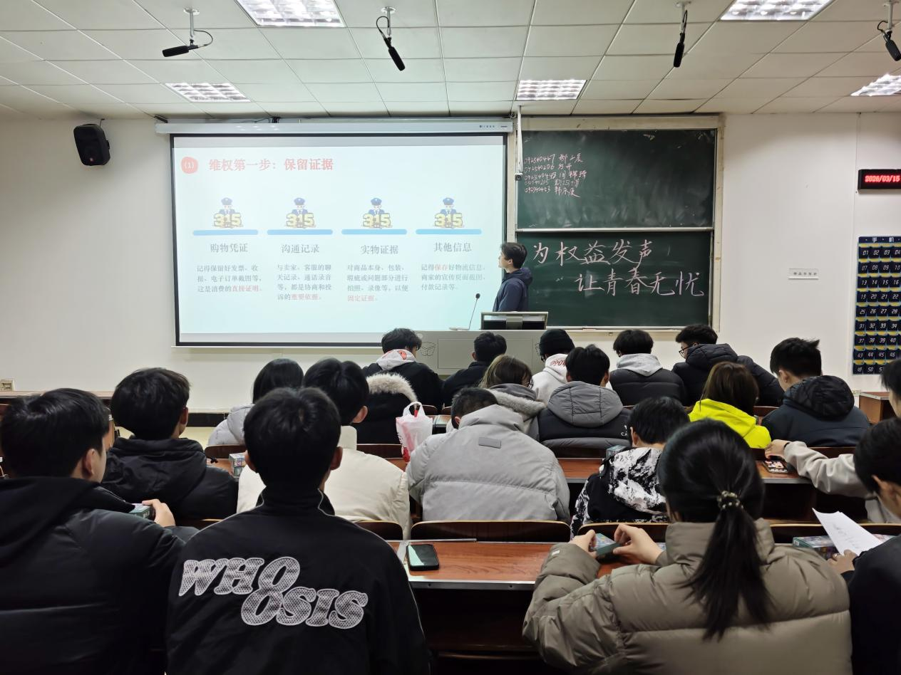 为增强大学生消费维权、防诈骗及校园生活权益意识,引导同学们理性消费、依法维权,营造安全文明的校园环境,我院于3月15日晚在德智楼9A210教室成功举办“守护青春权益,共筑平安校园”3·15权益科普活动。
