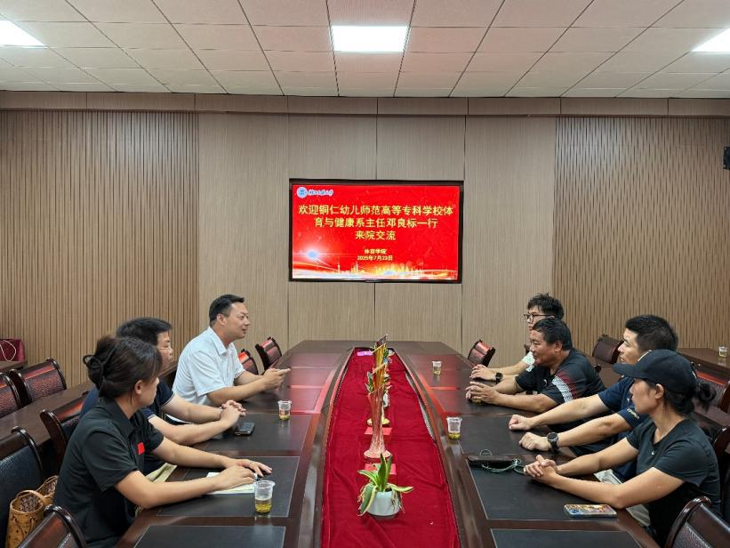 7月23日,铜仁幼儿师范高等专科学校体育与健康系主任邓良标、教师郑新、杨高等一行来到学院高脚竞速基地进行调研,副院长张辉陪同调研。