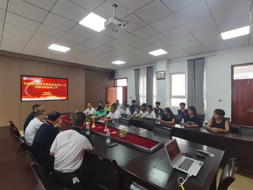 8月6日,湖北省民族宗教事务委员会何庆良处长、郭用德一级调研员一行莅临湖北民族大学体育学院,就高脚竞速训练基地建设工作进行调研指导,并慰问暑期集训运动员。学校党委常委、副校长李军,体育学院院长何斌、副院长胡庆华及基地教练员孙传清、陈芬、周一系陪同调研。