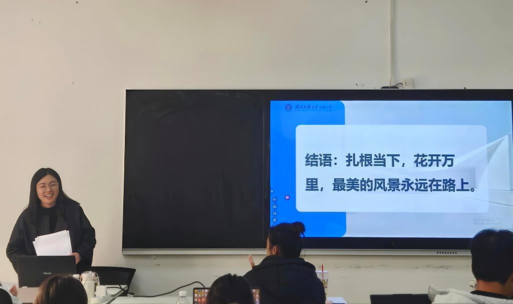 活动最后,曾岑老师以“扎根当下,花开万里,最美的风景永远在路上”作总结,鼓励体育学院研究生坚守体育本心和教育初心,在专业成长的道路上持续探索、不断精进。此次分享会的举办,为体育学院研究生搭建了经验交流的桥梁,对助力体育专业研究生深入一线实践促进专业成长具有重要意义。