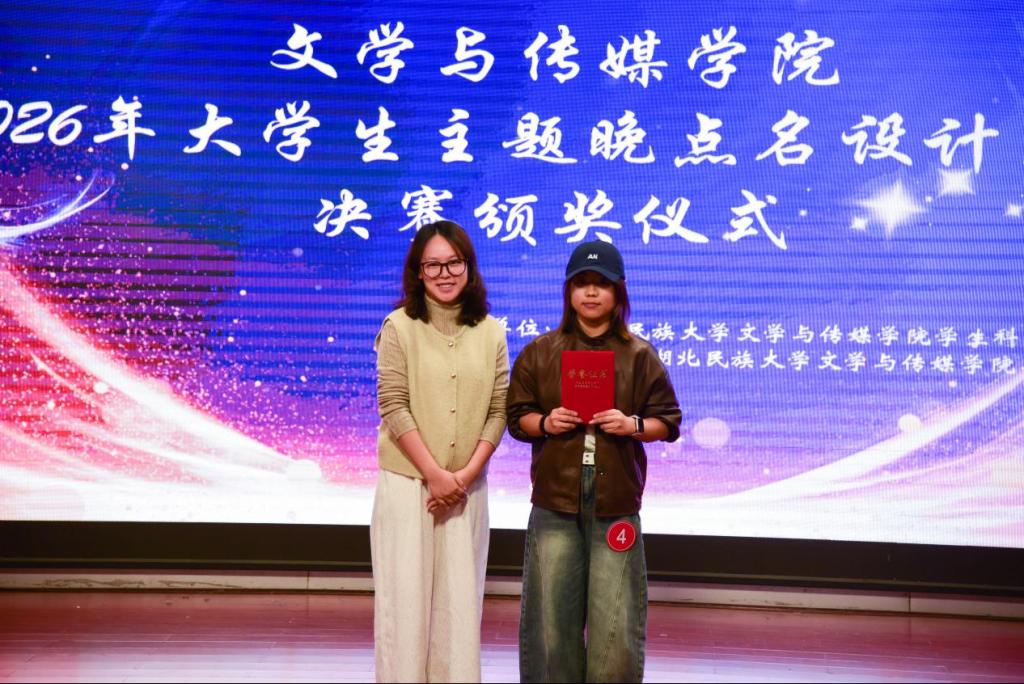 本网讯(记者 管继荣 韩璐/文 王玉婷 魏可欣/图)4月16日,我院2026年“大学生主题晚点名设计大赛”决赛在多功能演播厅顺利举行。我院辅导员姜春玲、王修皓、曾思琪受邀出席并担任评委。一等奖颁奖现场经过前期广泛宣传、作品征集与初选,共有来自全院各年级的十二组选手脱颖而出。比赛现场,各参赛...