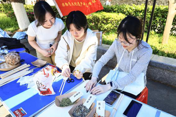 本网讯(记者 谢逸夫 董家怡/文 李悠然/图)4月16日,非物质文化遗产研习学社在大学生广场开展以“古韵润校园,文脉贯古今”为主题的特色活动。活动现场本次活动设置“银饰凝韵,苗韵流芳”“竹丝成器,匠心筑美”“香囊制艺,文脉传情”三个体验环节。在头饰观赏区,各类特色苗族头饰琳琅满目,搭...