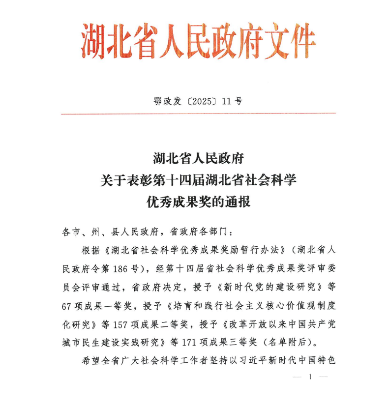 吴柳林教授获第十四届湖北省社会科学优秀成果奖 发布日期:2025-10-17 15:39:24    浏览量: 人次 打印   收藏