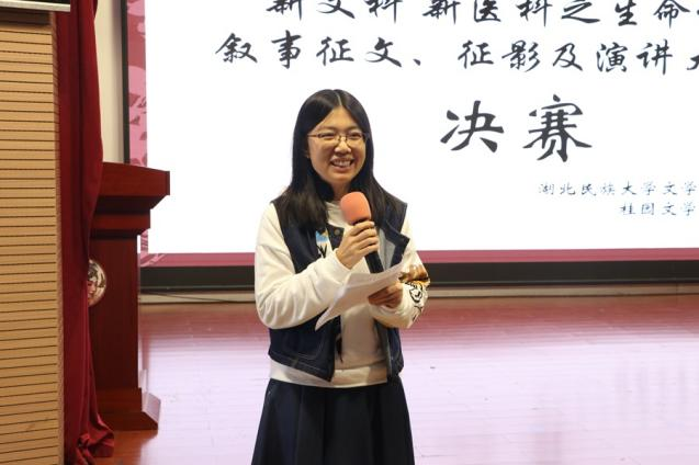 本网讯(记者 向美玲 李娇 曹登霄(见习)/文)11月13日,由湖北民族大学创新创业教育学院主办的“新文科·新医科之生命健康叙事”演讲大赛决赛在文传演播厅举行。我院副教授范生彪,教师梁三姗、辅导员姜春玲,桂园文学社往届社长张芮茜受邀出席并担任评委。