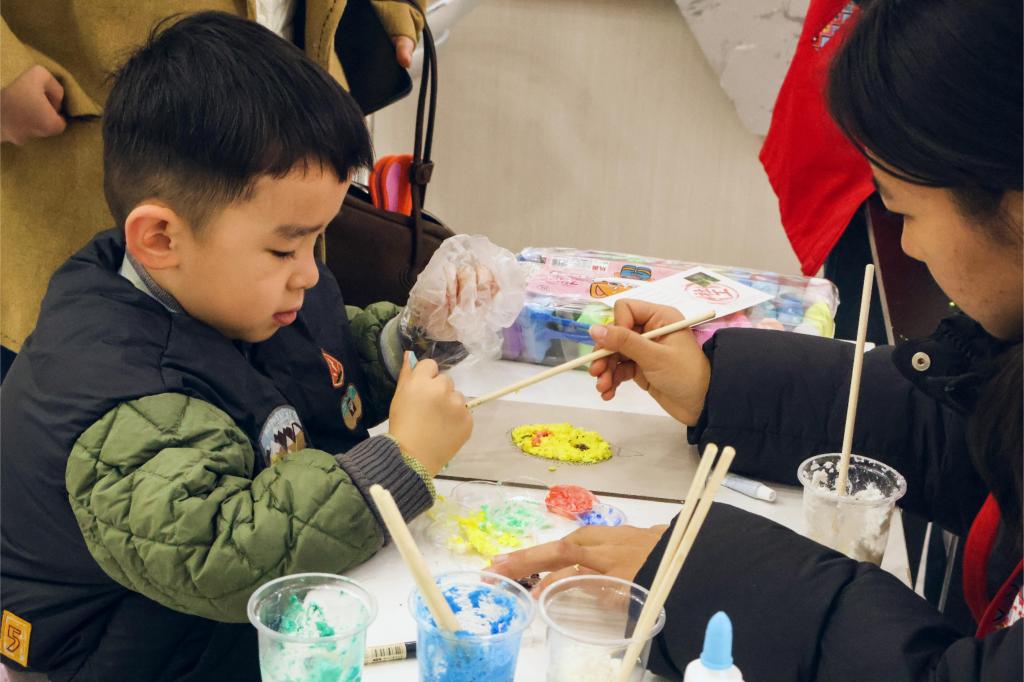 在浆画制作环节,志愿者们为小朋友们介绍了浆画的历史渊源与当下发展现状,随后进行现场示范,细致讲解纸浆制作、颜料调配以及简单图案绘制的方法。浆画制作过程由小朋友自主完成,志愿者巡回指导,及时解答疑惑,协助完成作品,帮助小朋友在创作过程中增强动手能力,进一步了解浆画历史,领略中华传统文化的独特魅力。