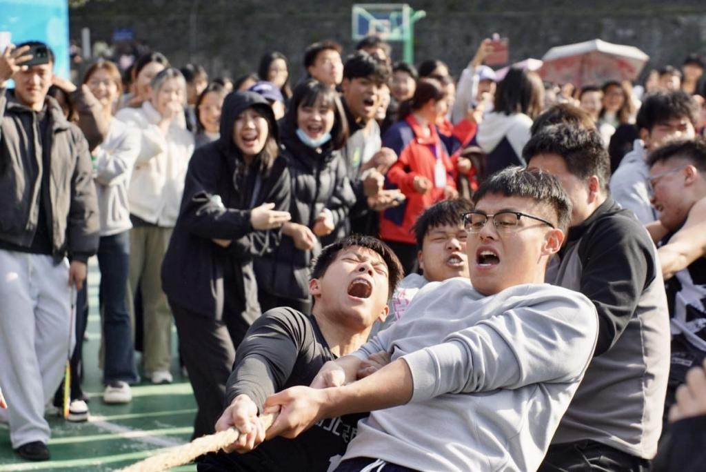 拔河场上,34个楼栋的34支队伍参赛,战鼓声震耳欲聋,欢呼声此起彼伏,整个现场洋溢着青春的活力与激情。经过激烈角逐,女生博爱9栋研究生代表队与男生立人2栋本科生代表队凭借出色发挥和默契配合,最终夺得冠军。