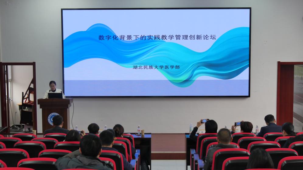 本网讯 (记者 许鑫洁/文 朱晓彤/摄)11月22日,湖北民族大学医学部成功举办数字化背景下的实践教学管理创新论坛,论坛邀请了郑州大学、湖北医药学院和武汉科技大学的三位专家为论坛做专题讲座。医学部常务副主任陈龙菊教授担任主持人。