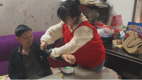 在桂花园社区,志愿者们分组开展入户血压测量服务。他们耐心为居民绑上袖带、仔细记录数值,并针对不同情况提供个性化的健康建议。一次次细致的操作,不仅筛查出多名潜在高血压患者,更让居民感受到温暖与关怀。