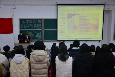 典礼在庄严的团歌声中拉开帷幕,由优秀团员代表戴锦鸿引领学员重温入团誓词,医学部团委雷刘涛宣读《医学部第六期青年马克思主义者培训班培养方案》,明确此次培训工作与要求,并鼓励新学员们积极参加志愿活动,提升自身综合素质。往期青年马克思主义者培养工程培训班优秀学员代表胡雅琪发言,她鼓励学员们在接下来的青马课程学习中,不断学习新的科学文化知识、提高自我政治理论修养,争做一名优秀的青年马克思主义者。随后,新学员代表王帅奇的发言,展现出了学员们将始终以昂扬向上的姿态以及积极参与培训、严格要求自我、坚定追求马克思主义真理的决心和勇气