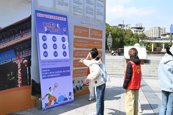 本次活动紧扣校园青年健康需求,以提升HPV病毒认知、普及疫苗接种知识为核心,医学部青年志愿者化身“健康宣传员”,将专业知识与趣味互动结合,开展全方位健康服务,让科普更接地气、更入人心。套圈游戏区,志愿者把HPV防控知识点融入游戏,同学们在趣味互动中赢取礼品、快速掌握防控入门知识,现场氛围热烈;宣传咨询区,志愿者手持自制宣传资料,用通俗语言讲解HPV疫苗价格、适配年龄、接种流程等实用信息,细致拆解专业医学概念;专业问诊台,志愿者协助恩施市妇幼保健院资深医生做好引导对接,针对同学羞于当众提问的情况,贴心提供一对一私密咨询的对接服务,为大家解答HPV传播、预防、疫苗选择等问题;志愿者还设置扫码答题环节,围绕HPV核心知识点设计趣味问答,帮助同学们巩固健康知识,深化防控理解。
