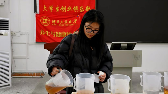 为弘扬中华传统茶饮文化、深耕中医养生与现代医学健康融合理念,湖北民族大学养生与健康协会、大学生创业俱乐部与“心之桥”协会于3月21日在医学部8305教室联合开展“本草润养茶会”活动。活动以茶知识科普与创意实践为主题,采用“品鉴引导+动手调配”相结合的形式,吸引了众多同学的热情参与。